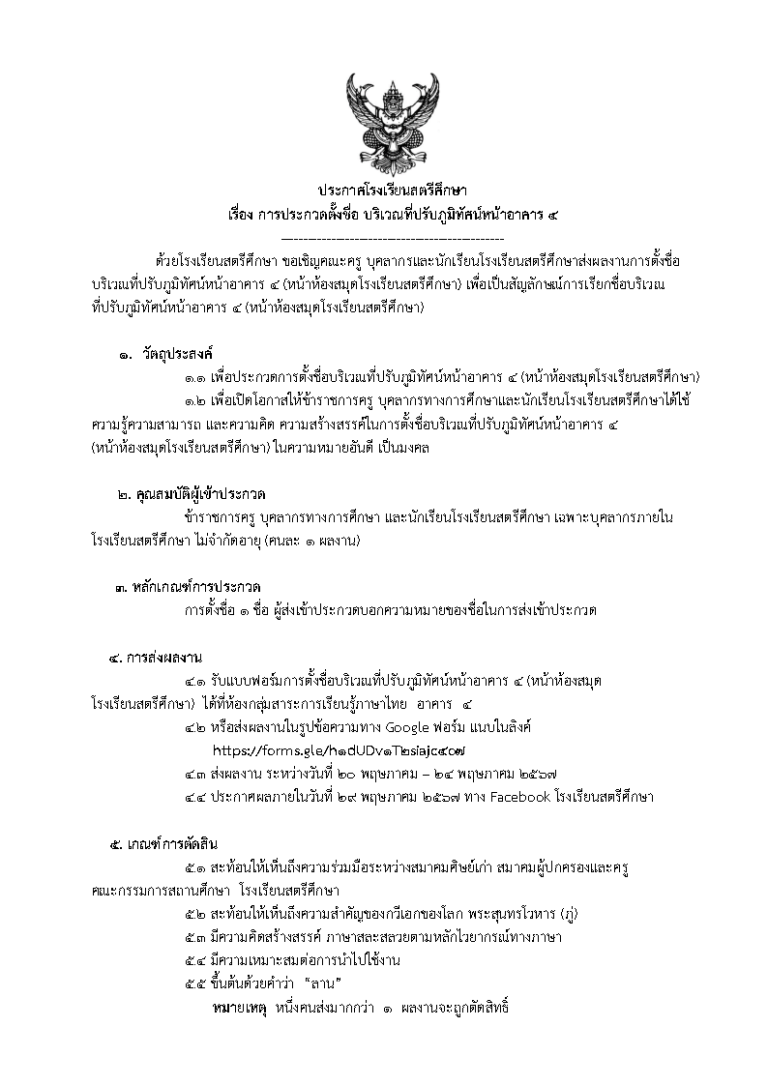 ประกวดการตั้งชื่อลานหน้าอาคาร 4