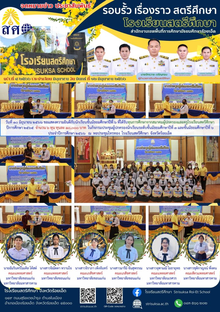 รับทุนการศึกษาจากสมาคมผู้ปกครองและครูโรงเรียนสตรีศึกษา ปีการศึกษา ๒๕๖๕