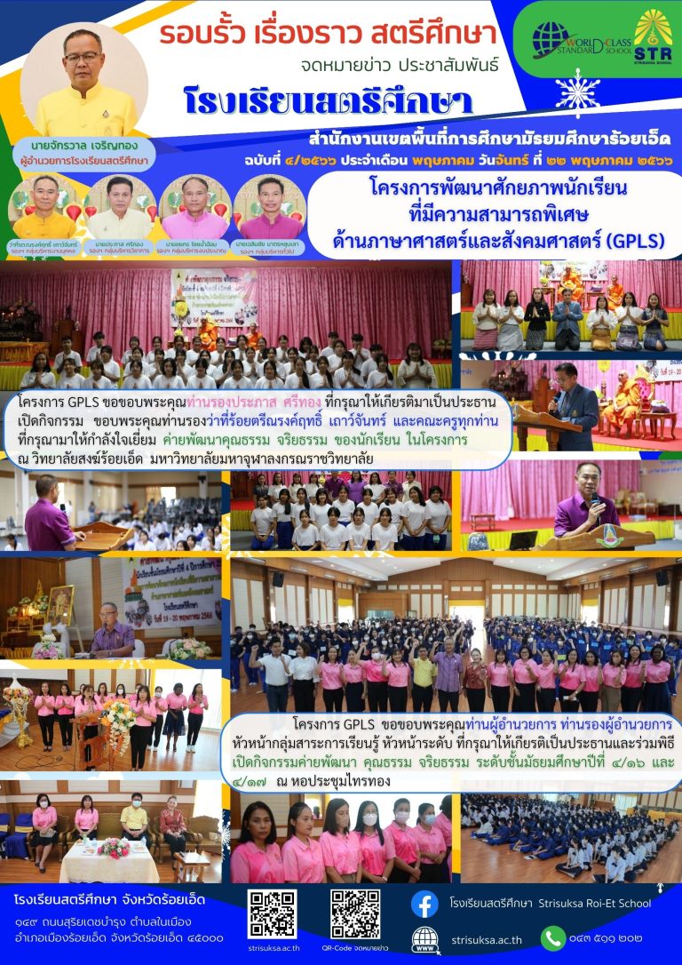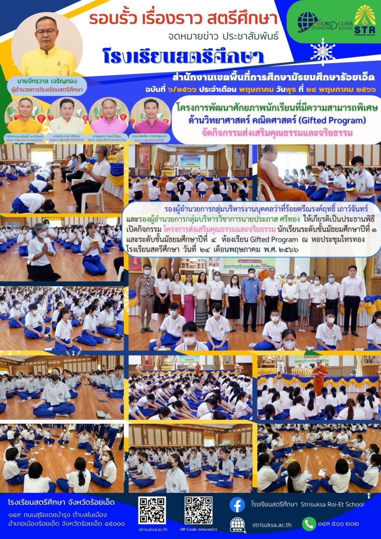 โครงการพัฒนาศักยภาพนักเรียนที่มีความสามารถพิเศษด้านวิทยาศาสตร์ คณิตศาสตร์ (Gifted Program) จัดกิจกรรมส่งเสริมคุณธรรมและจริยธรรม