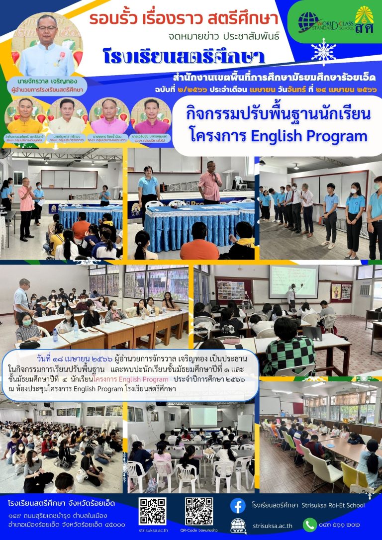วันที่ ๑๘ เมษายน ๒๕๖๖ กิจกรรมการเรียนปรับพื้นฐาน และพบปะนักเรียนชั้นมัธยมศึกษาปีที่ ๑ และชั้นมัธยมศึกษาปีที่ ๔ นักเรียนโครงการ English Program