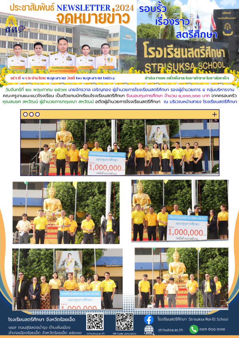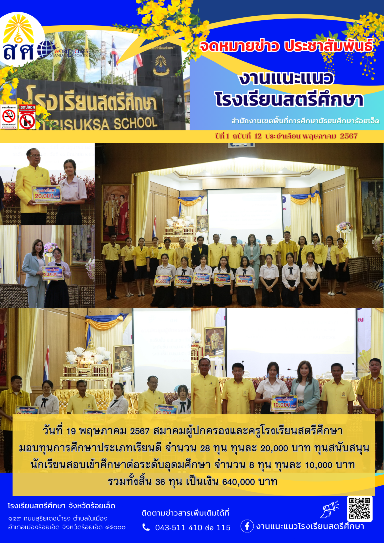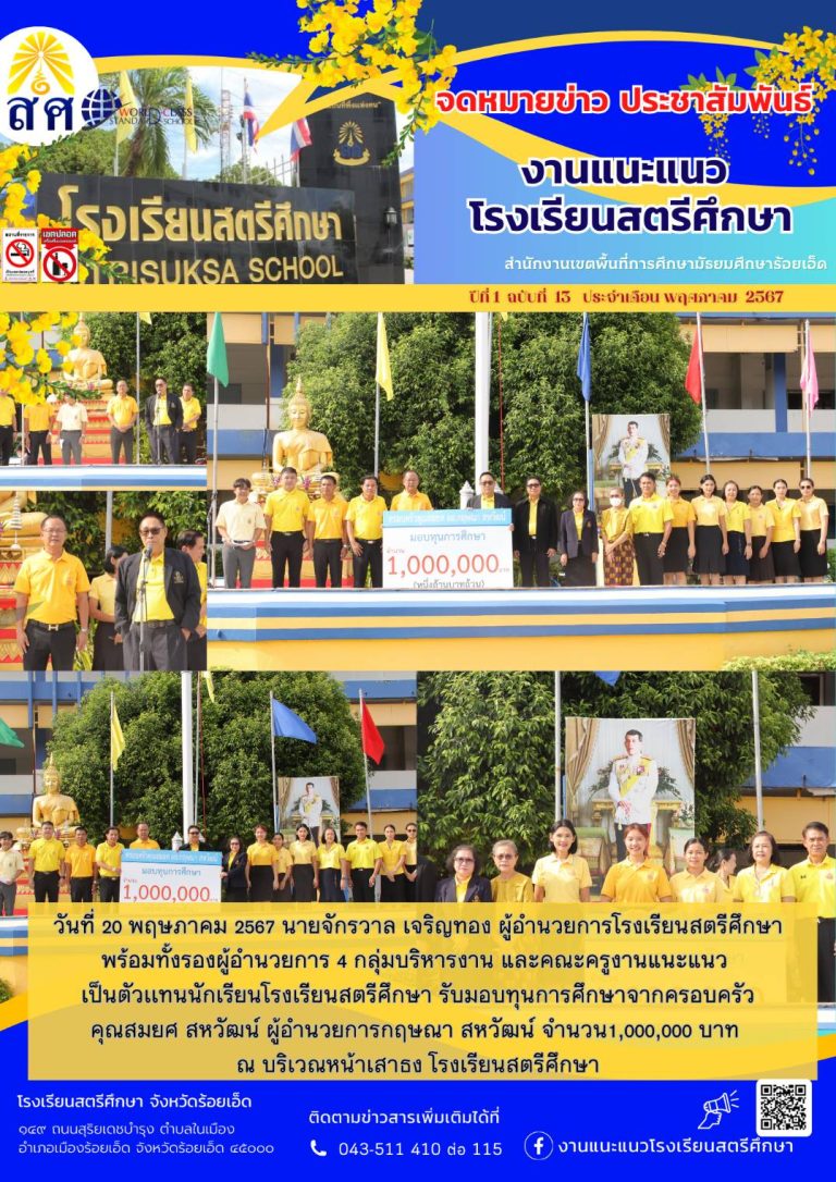 รับมอบทุนการศึกษา 1 ล้านบาทจากครอบครัวสหวัฒน์