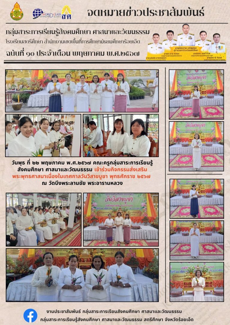 กลุ่มสาระฯสังคมฯเข้าร่วมกิจกรรมวันวิสาขบูชา
