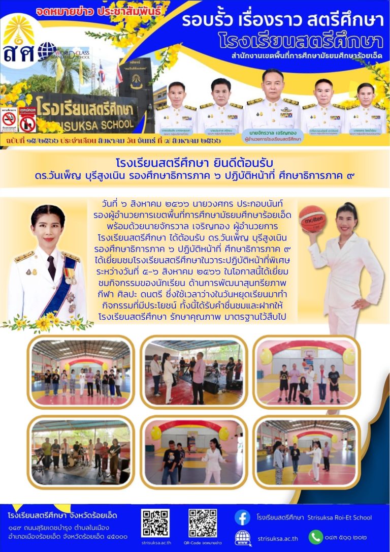 ดร.วันเพ็ญ บุรีสูงเนิน รองศึกษาธิการภาค ๖ ปฏิบัติหน้าที่ ศึกษาธิการภาค ๙ ได้เยี่ยมชมโรงเรียนสตรีศึกษา