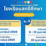 ผลการสอบแข่งขันสอบแข่งขัน Pre Gifted Program Test ครั้งที่ 3 ประจำปีการศึกษา 2567 ข่าวประชาสัมพันธ์ ข่าวเกี่ยวกับนักเรียน 27 ม.ค. 2025 7127 share tweet share ประกาศผลการสอบ Pre-Gifted ครั้งที่ 3 (PDF) ประกาศคะแนนสอบ Pre-Gifted ระดับชั้น ม.1 ประกาศคะแนนสอบ Pre-Gifted ระดับชั้น ม.4