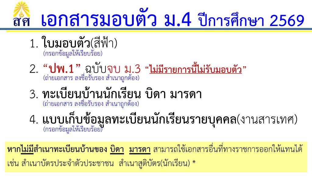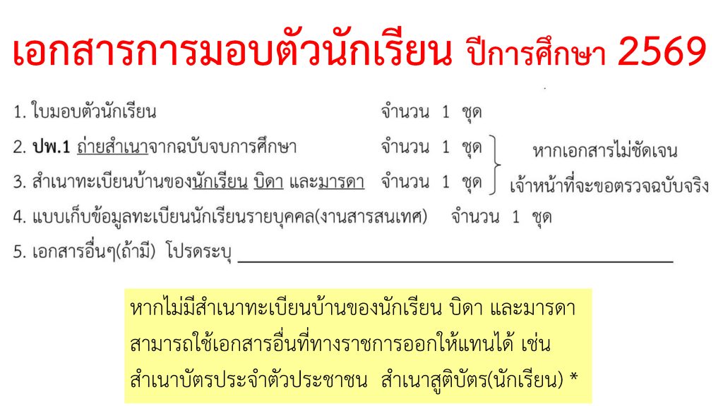 การมอบตัวนักเรียน ม.1 และ ม.4 ปีการศึกษา 2569 ข่าวประชาสัมพันธ์ 03 เม.ย. 2026 52 share tweet share รายชื่อมอบตัวนักเรียน ชั้น ม.1รายชื่อมอบตัวนักเรียน ชั้น ม.4ตัวอย่างใบมอบตัว ม.1ตัวอย่างใบมอบตัว ม.4 ตัวอย่างแบบเก็บข้อมูลรายบุคคล tags: มอบตัวนักเรียนใหม่