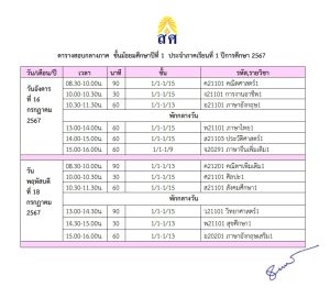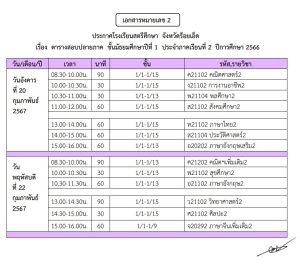 ตารางสอบกลางภาค ภาคเรียนที่ 2 ปีการศึกษา 2566 ข่าวเกี่ยวกับนักเรียน วิชาการ 07 ม.ค. 2024 2146 share tweet share ตารางสอบกลางภาค ภาคเรียนที่ 2 ปีการศึกษา 2566 ม.ต้น สอบวันที่ 9 และ 11 มกราคม 2567 ม.ปลาย สอบวันที่ 8,10 และ 12 มกราคม 2567 tags: ตารางสอบ เรื่องที่เกี่ยวข้อง ข่าวประชาสัมพันธ์ ข่าวเกี่ยวกับนักเรียน ตร.สอบกลางภาค 1/2568 ข่าวเกี่ยวกับนักเรียน ตารางสอบกลางภาคเรียน 1/2567 วิชาการ ตารางสอบปลายภาค 2/2566