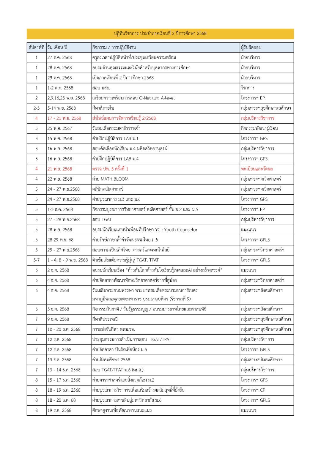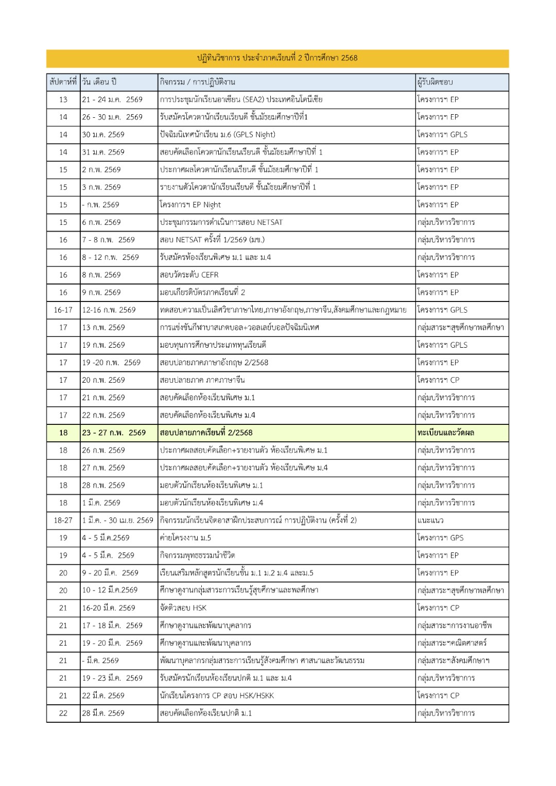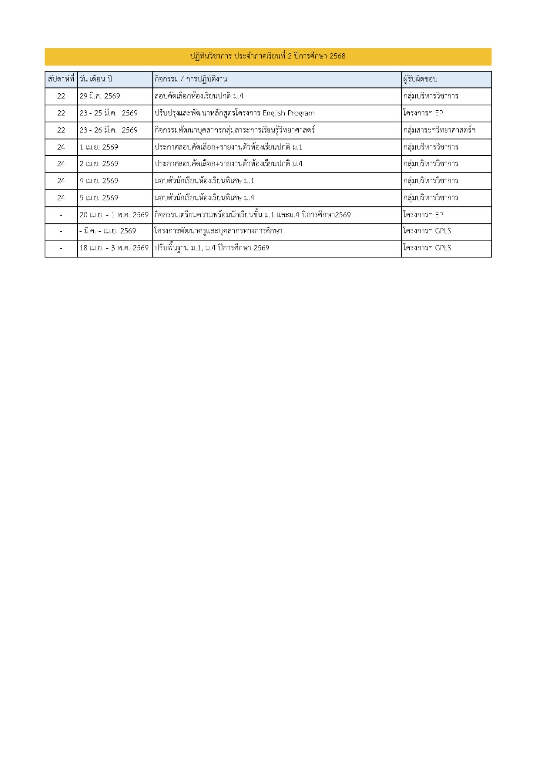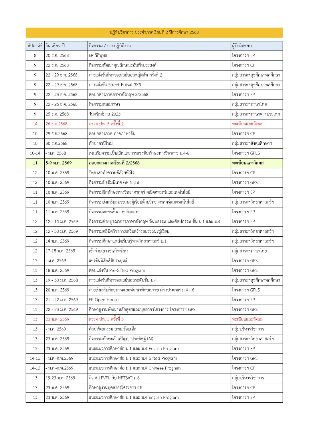 ปฏิทินวิชาการ ภาคเรียนที่ 2/2568